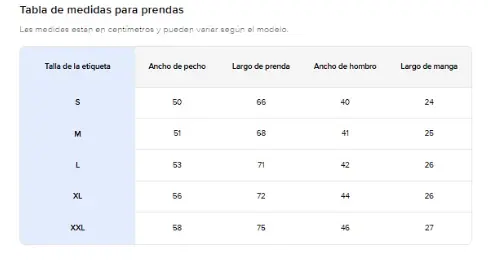 Largo de manga: Medir desde la costura del hombro hasta el puño de la manga