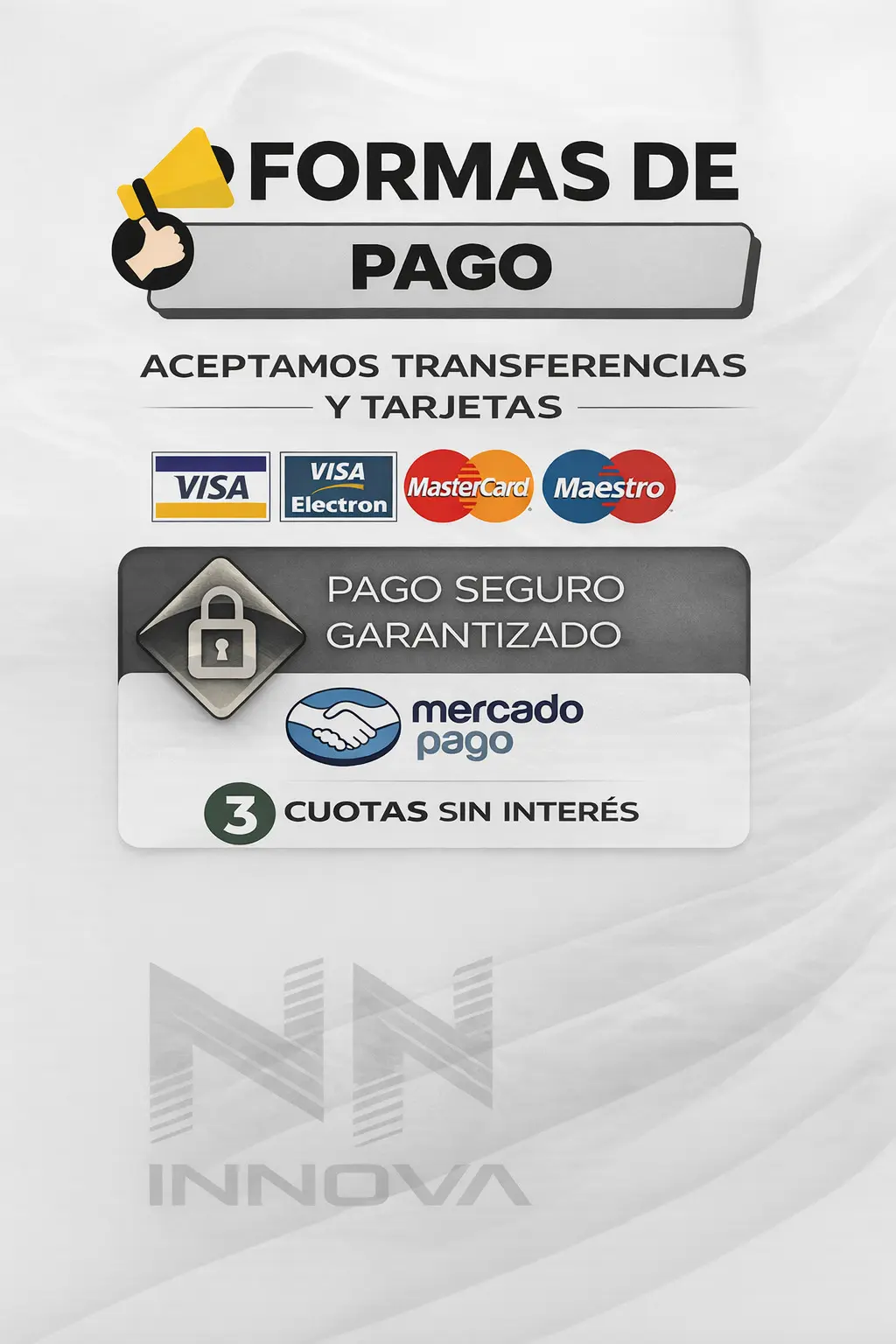 Disfruta de tus productos favoritos y aprovecha estas facilidades de pago para que tu compra sea aun más conveniente. ¡Sólo en INNOVA!.